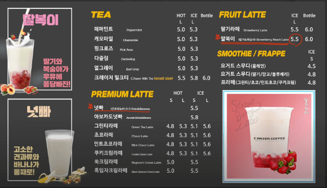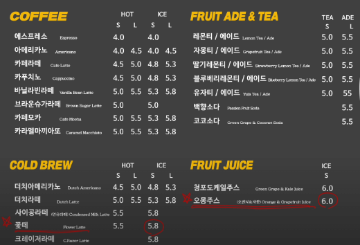커피, 콜드브루, 프리미엄 음료, 과일 음료, 스무디 및 아이스크림까지 정말 다양한 음료를 판매하고 있습니다.