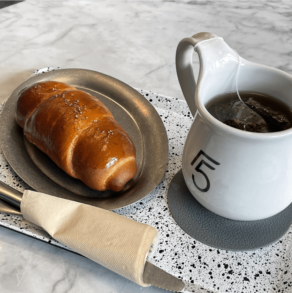 주문을 키오스크에서 하면 자리로 가져다 줍니다. 너무나 편리한 시스템입니다. 소금빵과 차가 나왔고, 보통 소금빵이 눅눅한 카페들이 있는데 반해 엄청 바삭하고 속은 촉촉하였습니다. 소금빵을 좋아하는 사람들은 여기 와서 소금빵을 먹어도 좋을 것 같습니다.