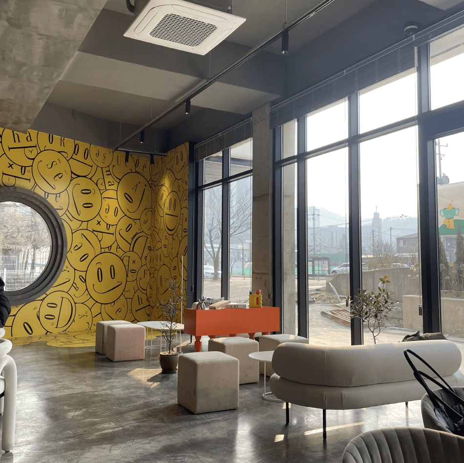 내부 공간이 다양하게 디자인 되어 있습니다. 개인적으로 의자가 편한 카페를 정말 좋아하는 데 다양한 의자 디자인과 함께 편한 의자로 되어 있어서 너무 좋았습니다. 또한 다양한 컬러감을 믹스하여 더욱 더 생기가 가득한 카페였습니다.