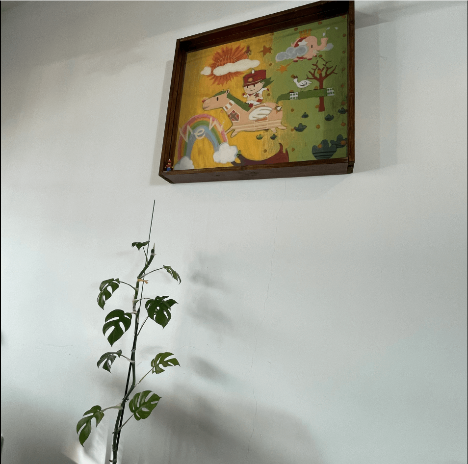 주문한 커피를 기다리며 내부 공간을 감상하는데, 다양한 위치에 직접 그렸다는 그림들이 예쁘게 전시되어 있었습니다. 그림은 물론 아기자기한 여러 소품들이 너무 예뻐서 구경하는 와중에 커피가 나와서 자리로 돌아가 커피를 먹었지요.