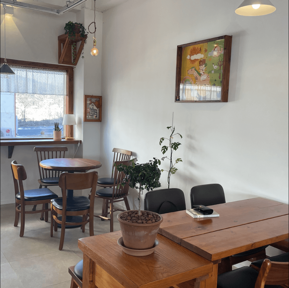 행구동에 위치한 카페로 한적한 곳에 위치하고 있습니다. 아직 개발이 많이 되지 않은 동네라 건물이 몇 개 드문드문 존재하며 그 중에 하나로 자리잡고 있습니다. 이러한 곳은 주차공간이 넓다는 장점이 있으며, 주변에 차 댈 곳도 많아 주차로 인한 스트레스를 받을 일이 없습니다. 야외 테이블도 있어서 봄이 오면 많은 사람들이 야외에서 한적함을 느끼며 힐링하기에 좋습니다.